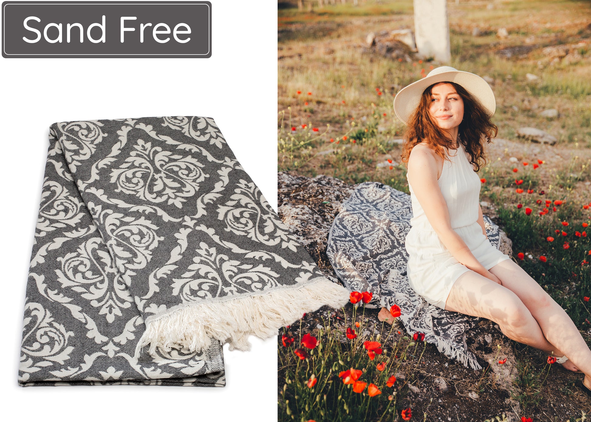 - SAND FREE BEACH TOWEL – Nobody likes sand in their beach bag after a long day in the sun. This Turkish towel is made from a specific dense fabric that repels sand from staying on it. Just lift and shake the towel and you will remove all sand in one quick move.