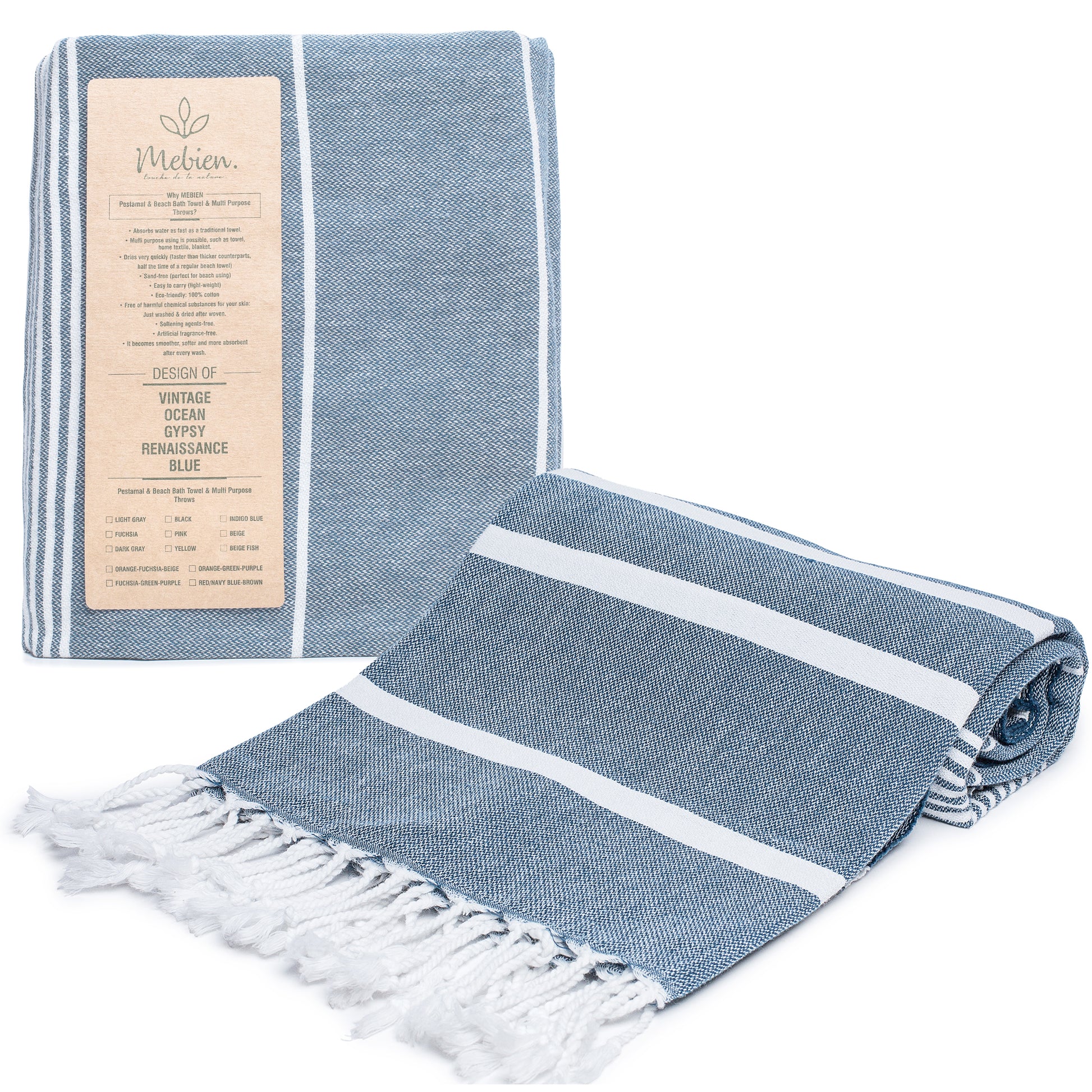 - LIGHTWEIGHT – Turkish beach towel is super lightweight due to its thin fabric. Perfect on the go or when traveling and very easy to pack for your trip to the beach. You can easily save space in your luggage or your beach bag.