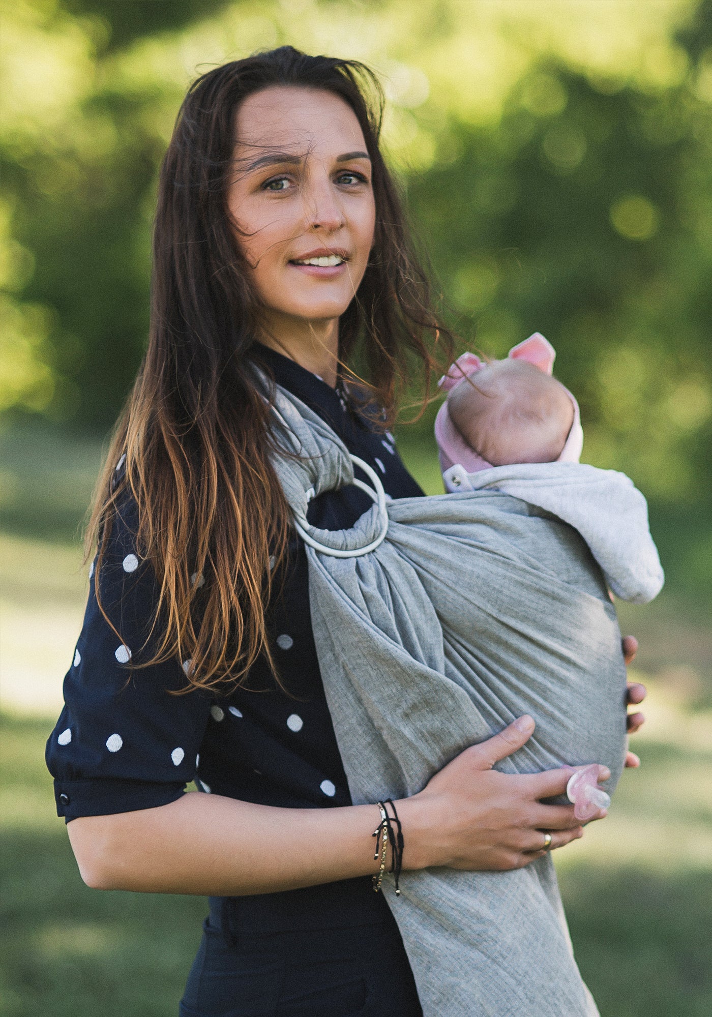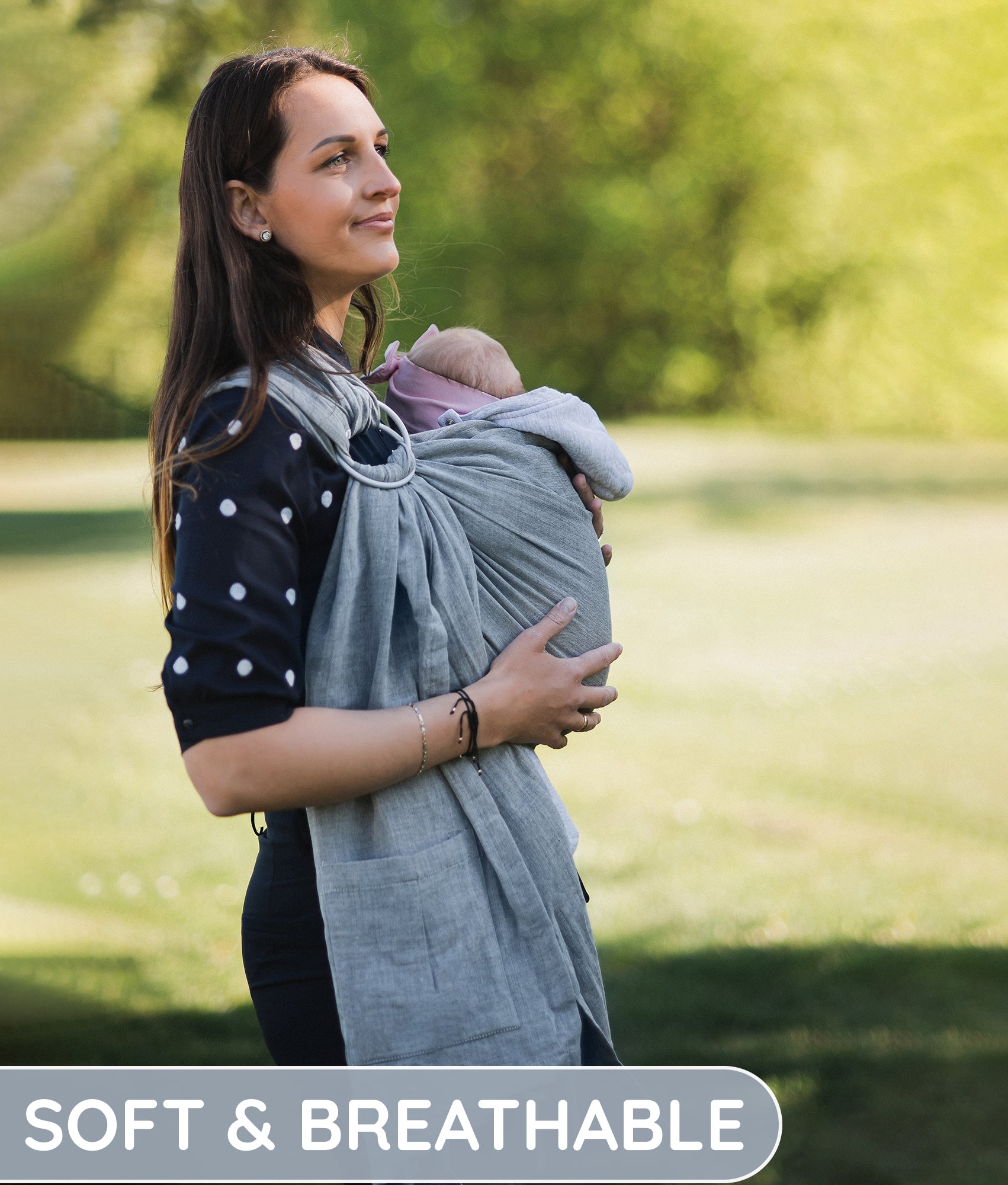- CALM AND PEACEFUL BONDING - In a ring sling, the baby is next to your chest all the time, snuggled in and secure. Physical contact with the infant causes mothers to release oxytocin and promotes bonding and breastfeeding. You can also breastfeed anywhere and the baby sleeps easier once in a baby wrap carrier. Researchers found that babywearing for three hours a day reduced infant crying by 43 percent overall. Slings are also a great bonding tool for fathers or grandparents.