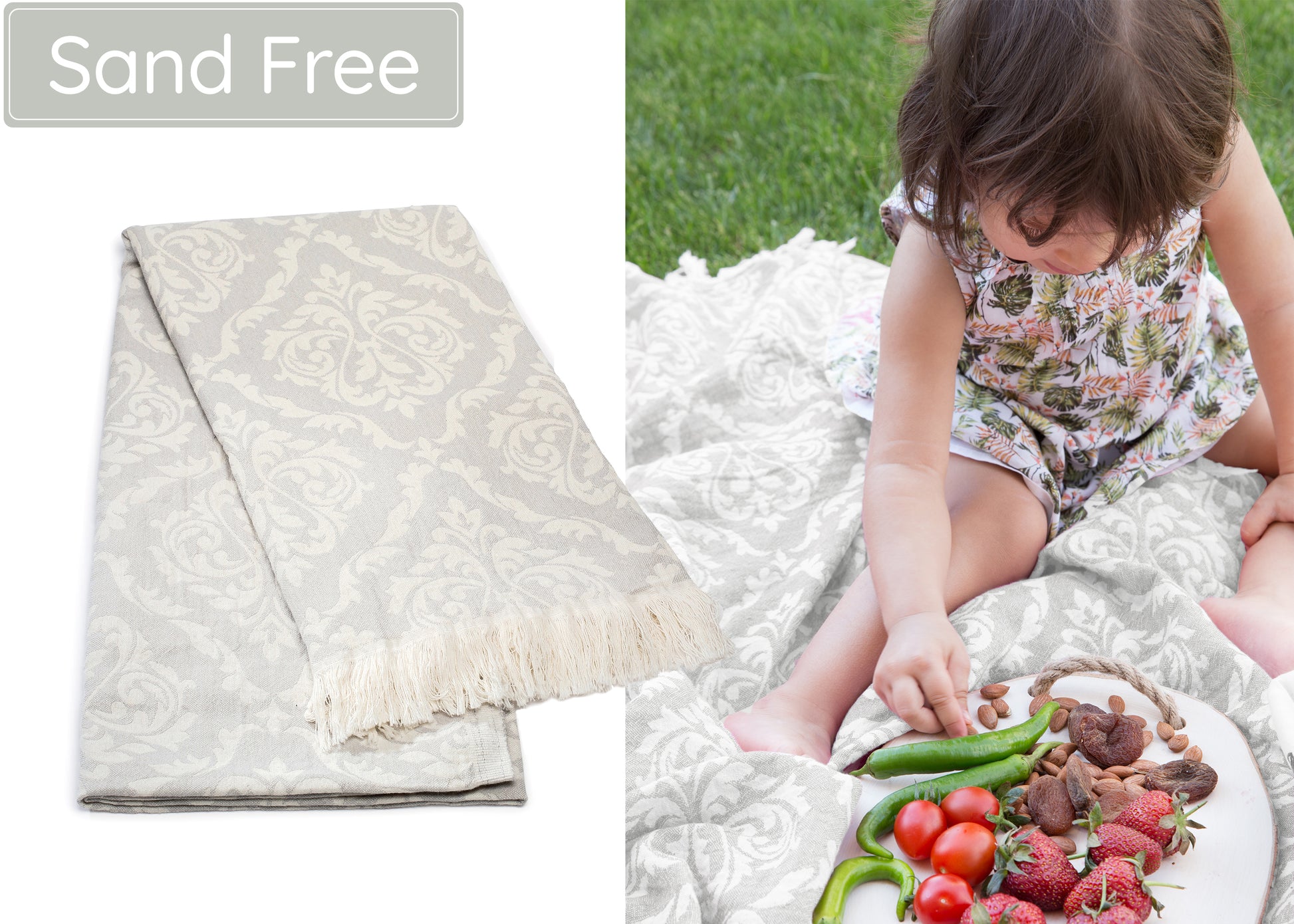 - SAND FREE BEACH TOWEL – Nobody likes sand in their beach bag after a long day in the sun. This Turkish towel is made from a specific dense fabric that repels sand from staying on it. Just lift and shake the towel and you will remove all sand in one quick move.