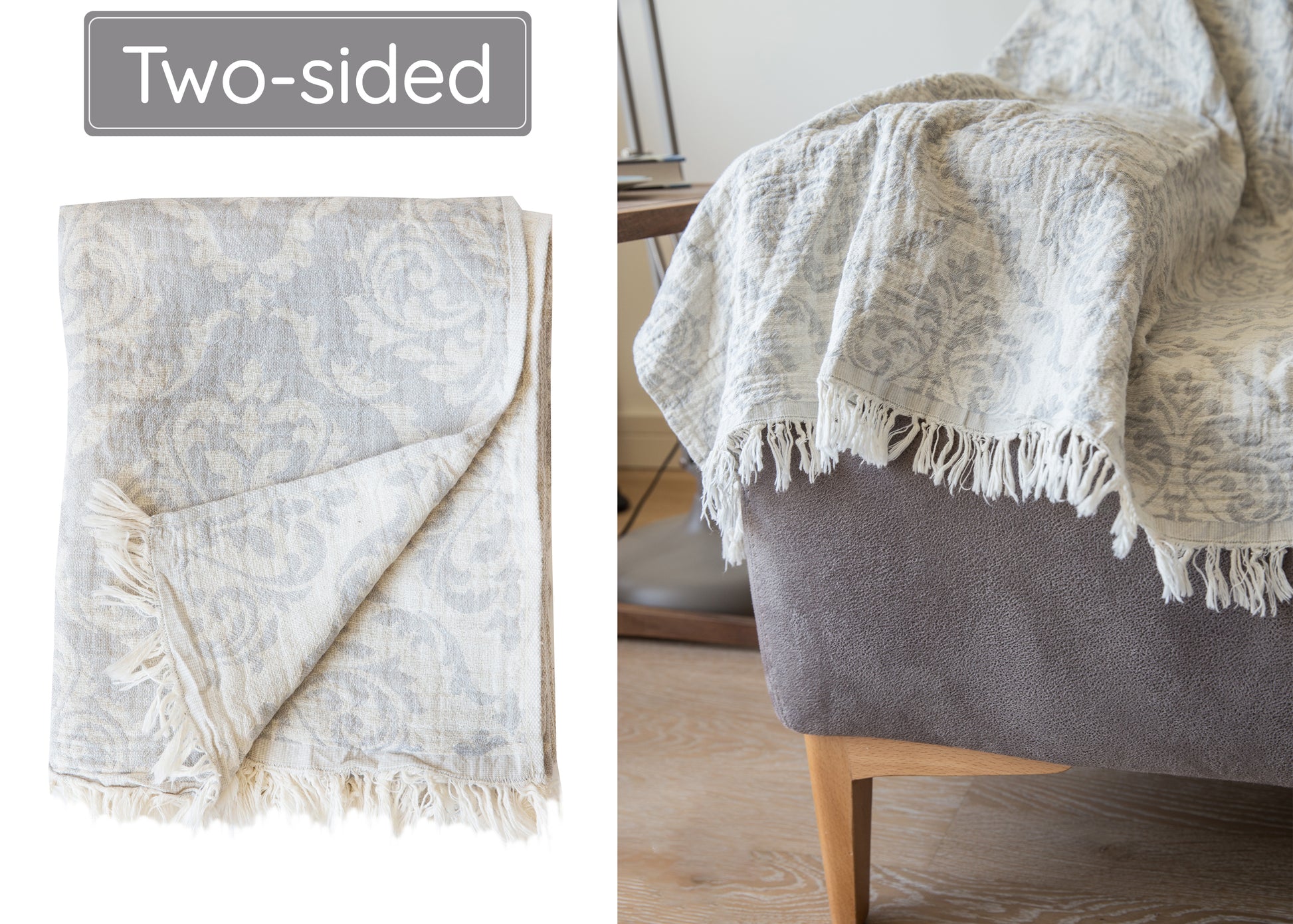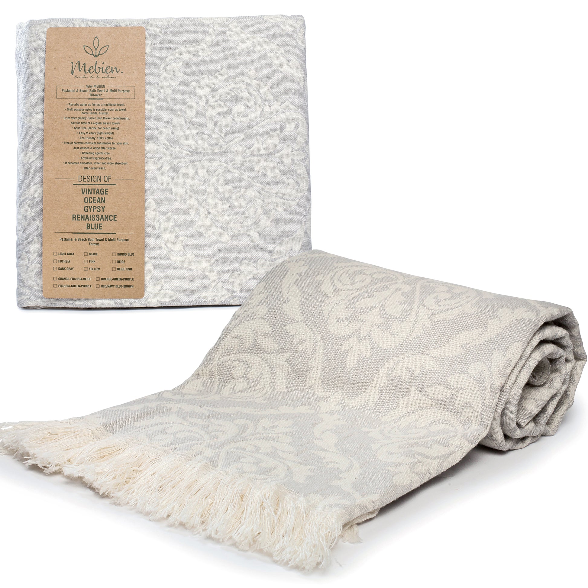 Grey Turkish Beach Towel (35”x67”) Lightweight, Quick drying and Sand Free Can be Used as Beach Blanket 100% Cotton Renaissance Design
