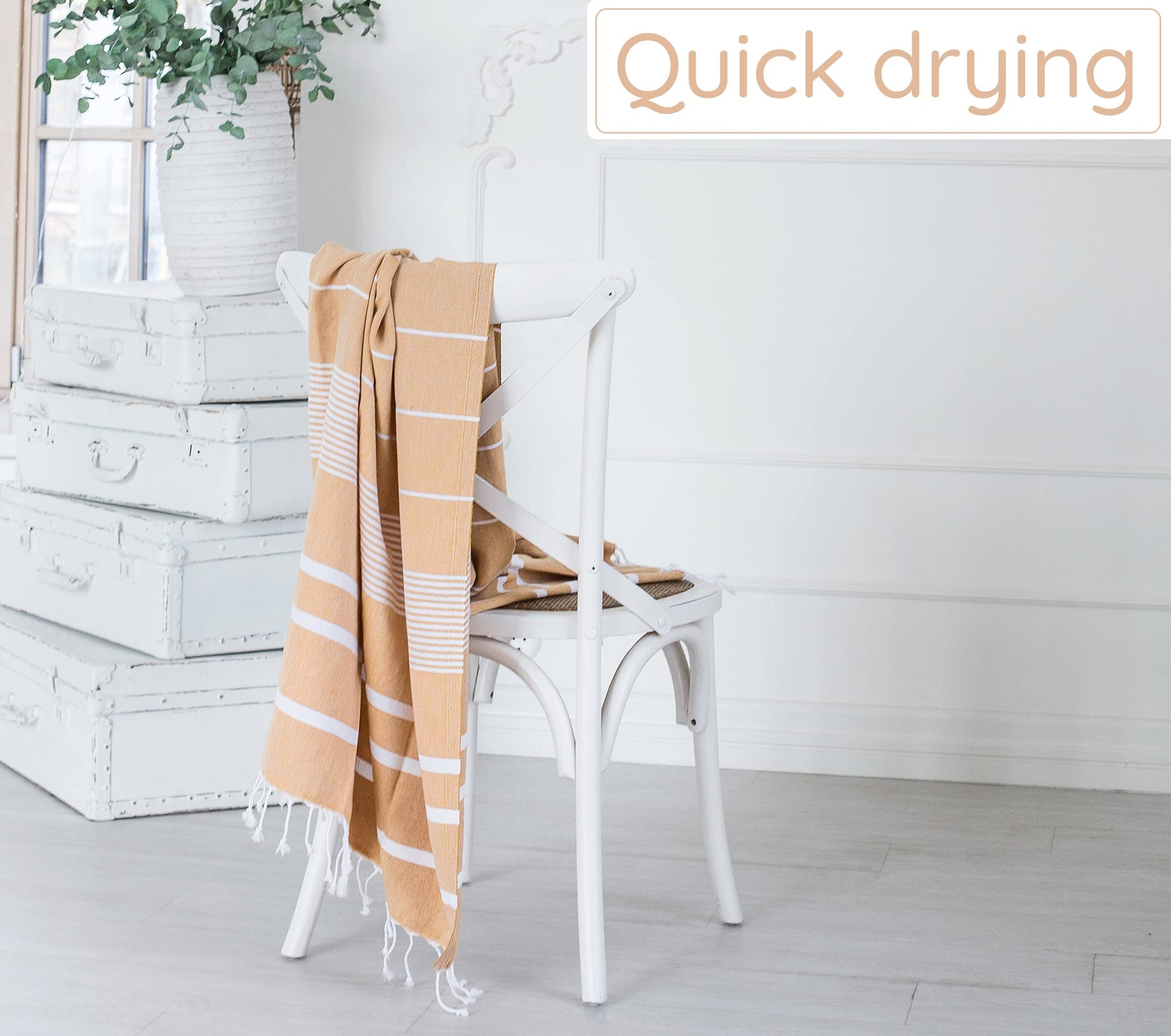 Premium Turkish Beach Towel – 100% Cotton, Quick Dry, Sand Free, Oversized Beach Towels 35”x67” – Ideal for Travel, Pool, and Beach Blanket – Honey Yellow Color