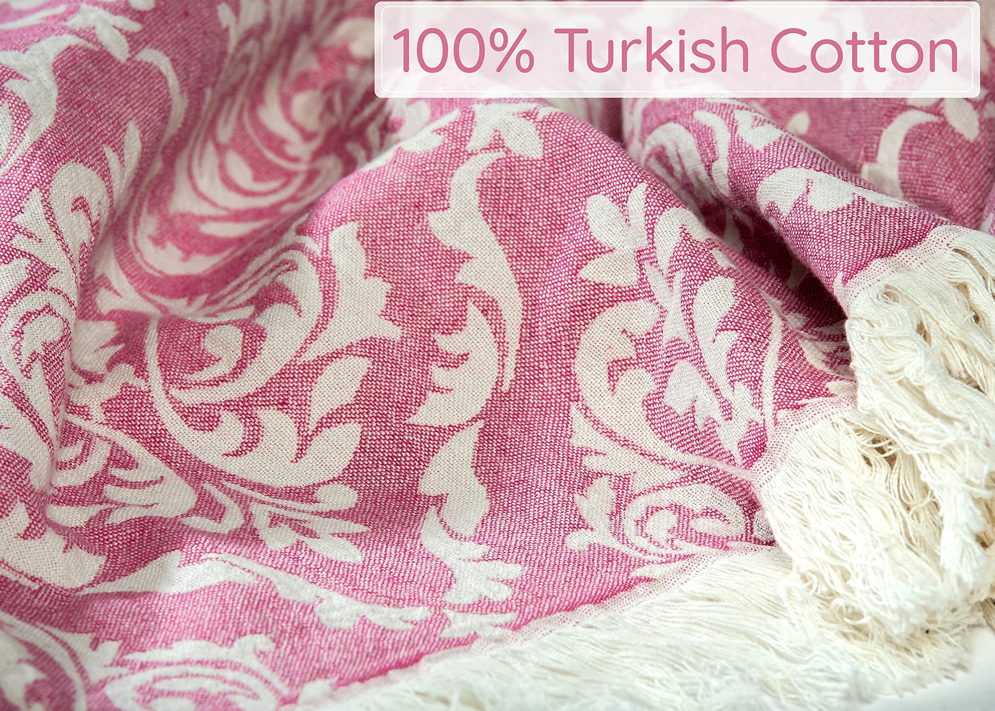 Turkish Beach Towel (35”x67”) – 100% Cotton, Quick Dry, Lightweight, Soft Oversized Beach Towel for Travel & Pool – Renaissance Fuchsia Color