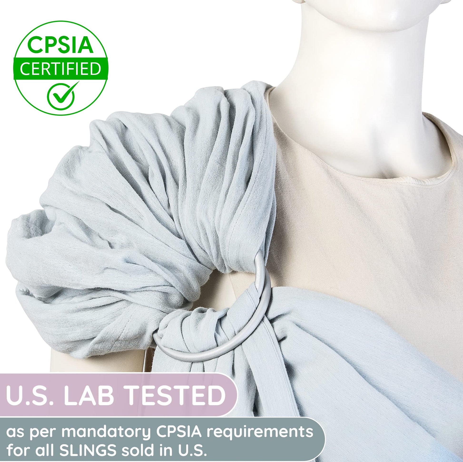 Ring Sling Baby Carrier - USA Lab Tested, 100% Natural Cotton Muslin, Breathable & Ergonomic Ring Sling Light Blue