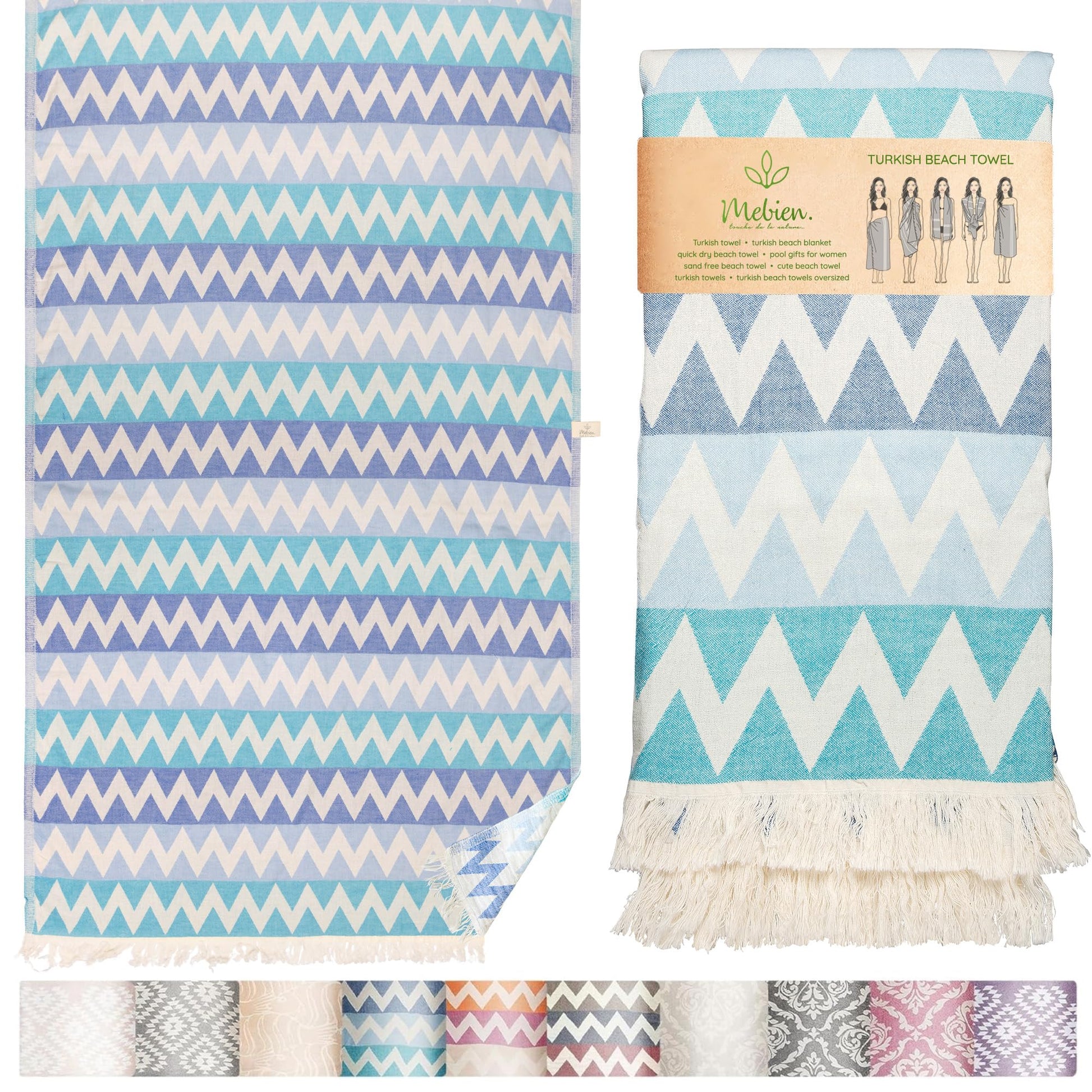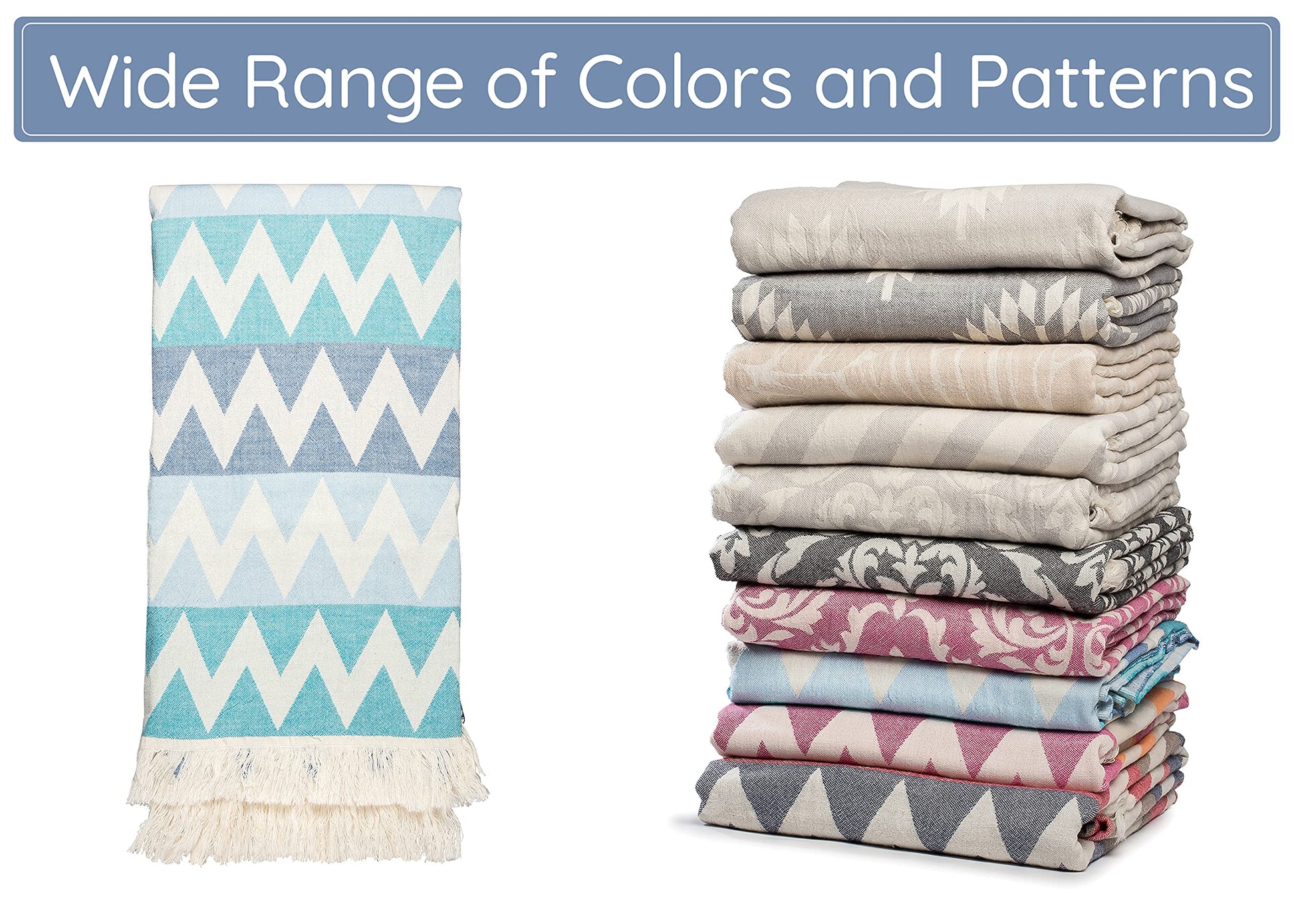Premium Turkish Beach Towel – 100% Cotton, Quick Dry, Sand Free, Oversized Beach Towel 35”x 67” – Ideal for Travel, Pool, and Beach, – Zig Zag Blue