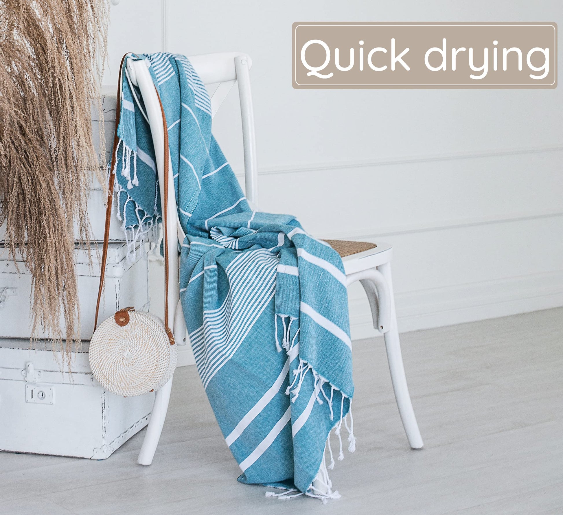 · VERSATILE FOR MULTIPLE SETTINGS – Use it as a beach towel, pool towel, Turkish towel, wrap, or picnic mat. A multi-functional choice for beach lovers and travelers alike.